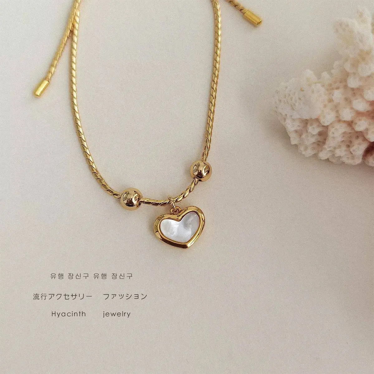 Gold Plated Adjustable Bolo Bracelet with Mother-of-Pearl Heart Charm