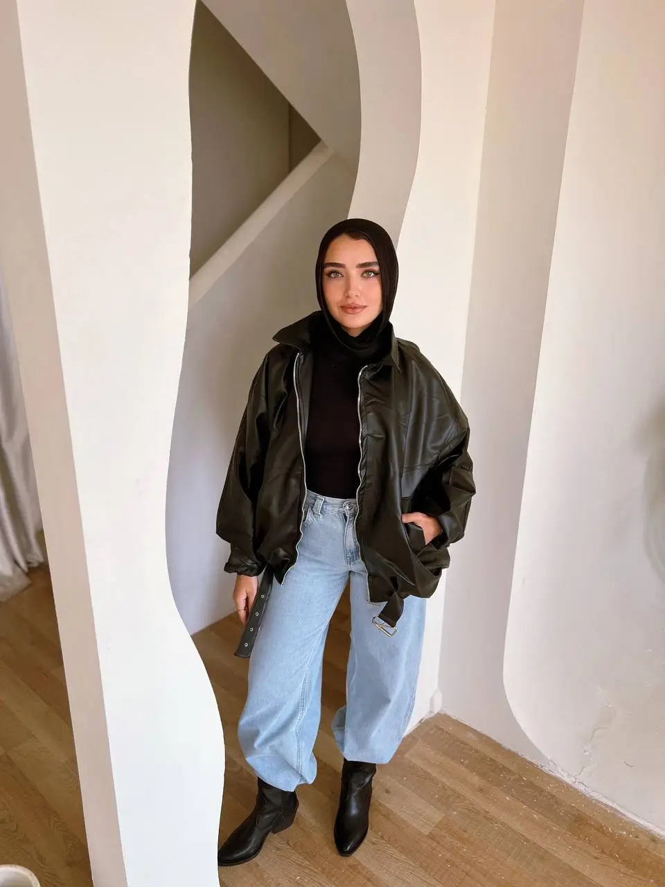 The “Rebel Fusion” Denim & Leather Biker Jacket