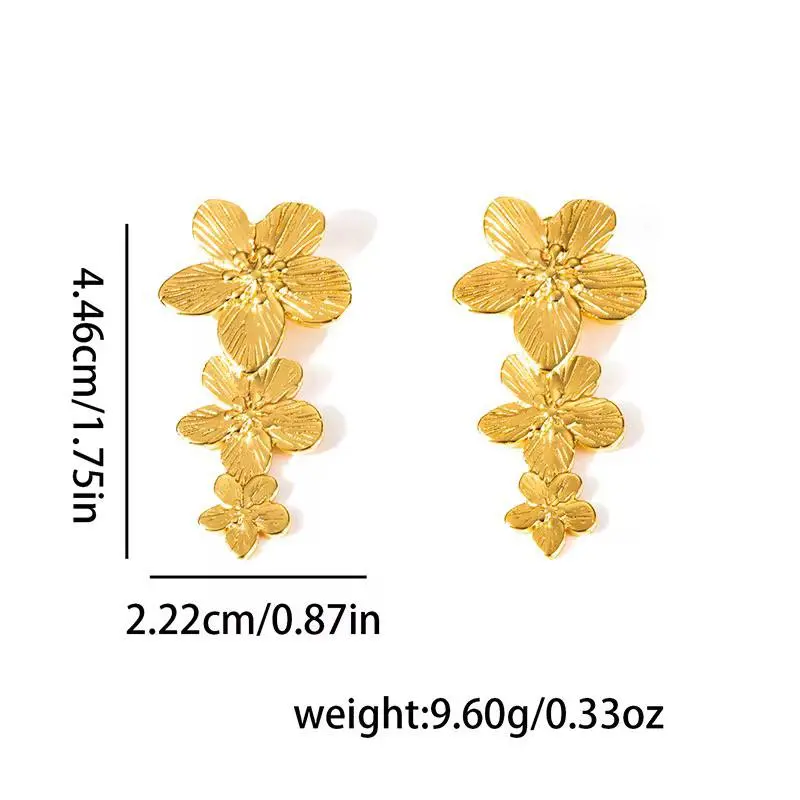 Design: These are elegant drop earrings composed of three tiered elements that create a dramatic length.