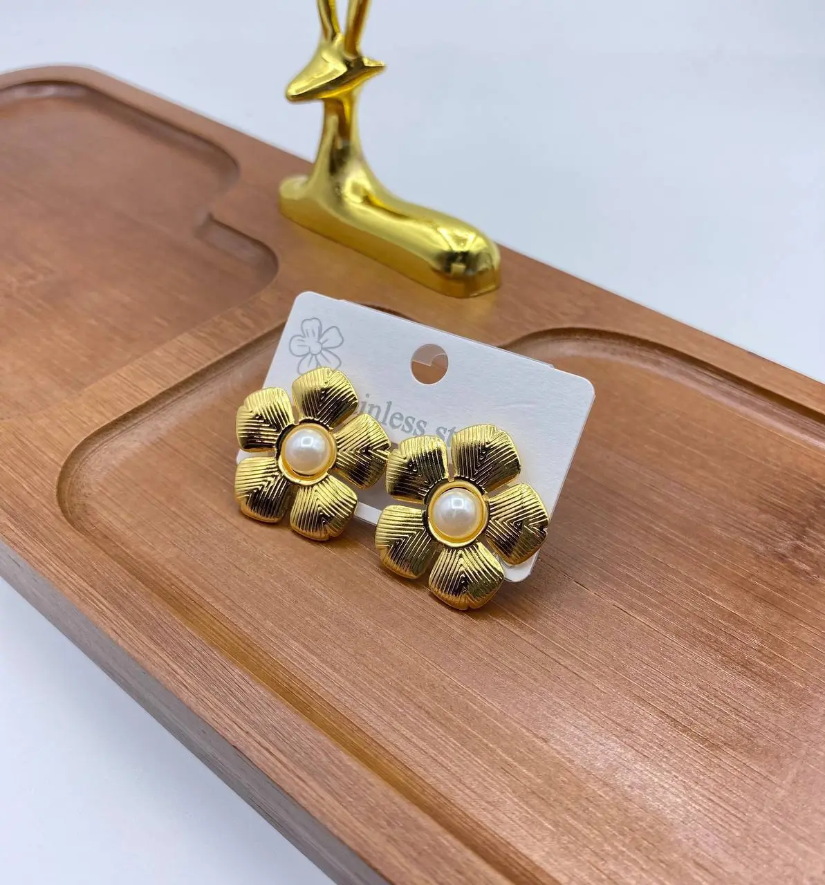 Design: These are prominent stud earrings shaped like a flower with distinct petals.
