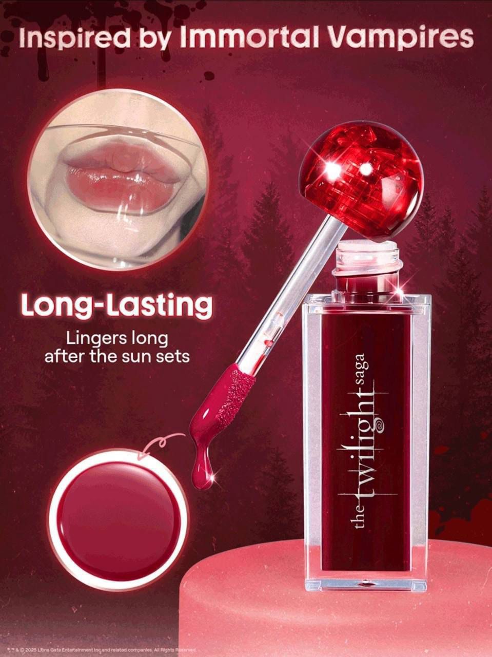 Final Result: Intense, deeply pigmented, and comfortable lip color with a luminous finish that embodies the eternal, captivating beauty of the Twilight universe.