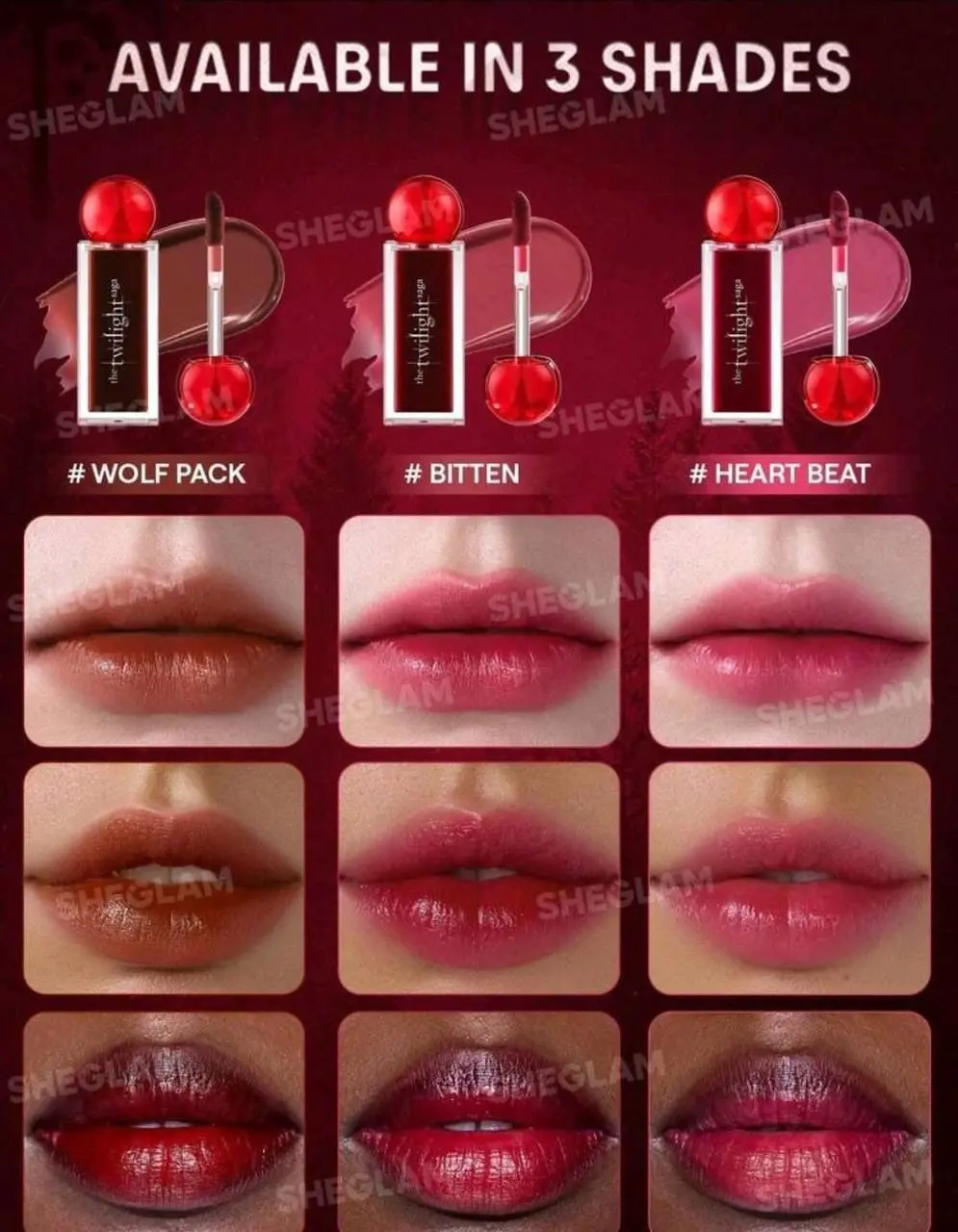 Inspired by Immortal Vampires and the mystical allure of The Twilight Saga, the SHEGLAM Immortality Lip Tint from beautyPlanet offers a mesmerizing lip stain that lingers long after the sun sets. This liquid tint delivers a veil of luminous, long-lasting color inspired by the iconic vampire and wolf pack aesthetics.