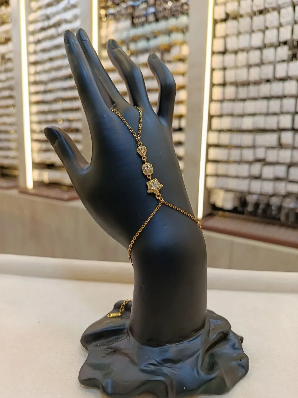 Set Content 3 Hand Chain Variations (Minimalist, CZ Stone, Star/Heart Charms)