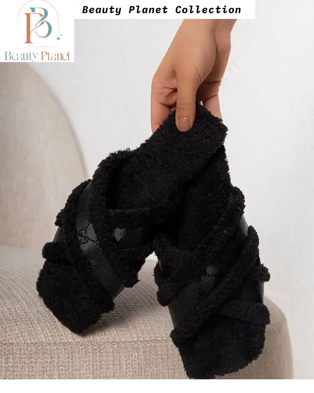 • Luxe Faux Fur Texture: Features ultra-soft, shaggy faux fur that envelops your feet in comforting warmth and softness.