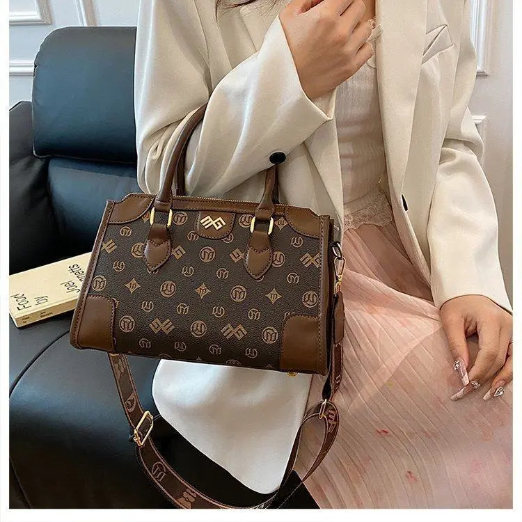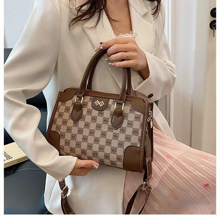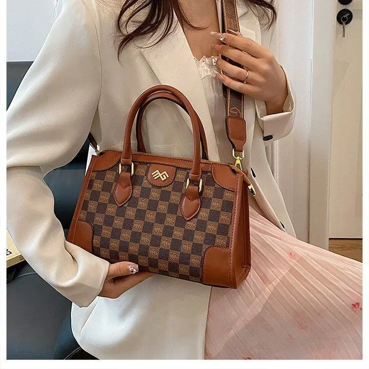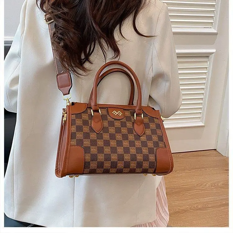 Elevate your look with our Premium Signature Satchel, a classic Boston-style bag blending timeless structure with modern patterns. Featuring premium faux leather, twin top handles, and a secure zippered closure. Available in a sophisticated Monogram Logo Print or an elegant Damier Check pattern. Comes complete with a wide, stylish fabric crossbody strap for ultimate versatility.