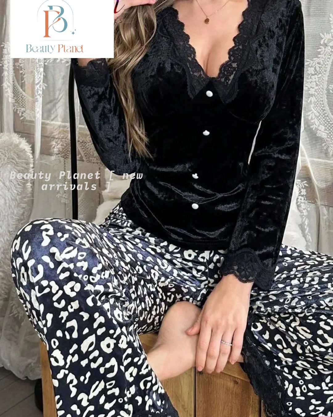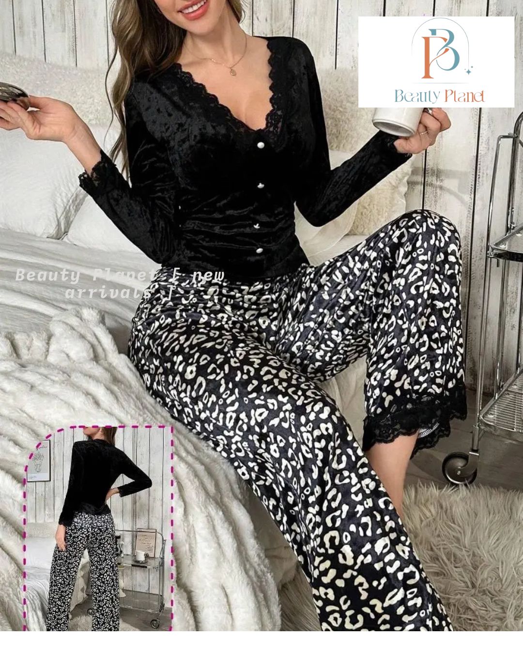 Indulge in ultimate comfort and elegance with the ‘Velvet Nights’ Pajama Set, exclusively curated by beautyPlanet. This two-piece set is designed for the woman who values luxurious lounging, combining rich textures and sophisticated prints. Sourced with European Imported Quality, this set guarantees premium comfort and enduring style for your restful moments.