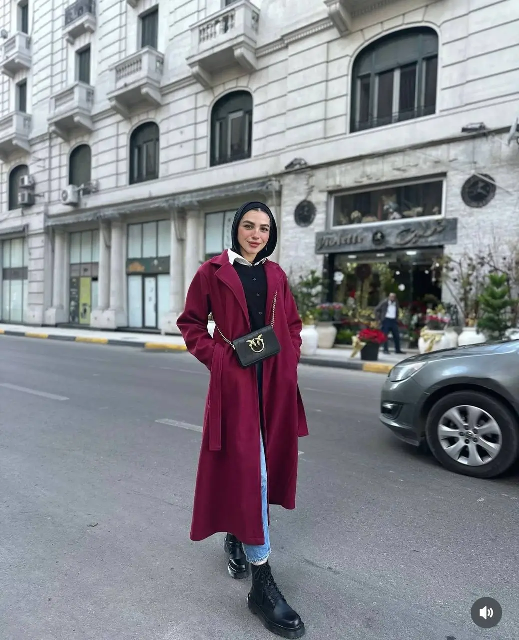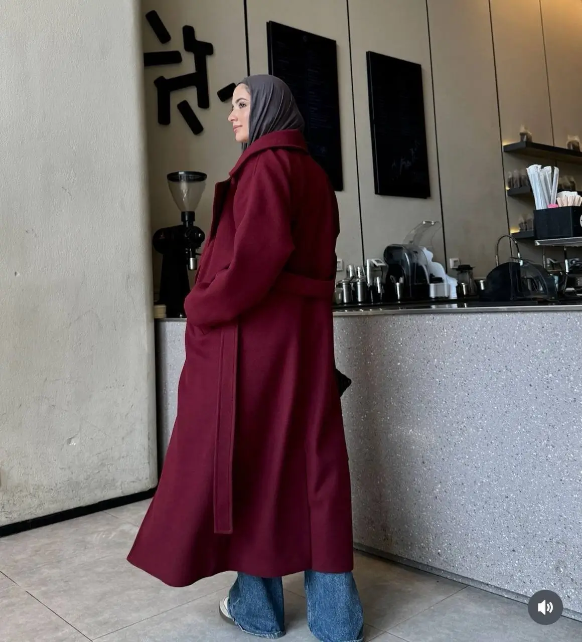 Statement Color: The deep burgundy shade creates a bold, luxurious look that stands out against the typical winter neutrals.