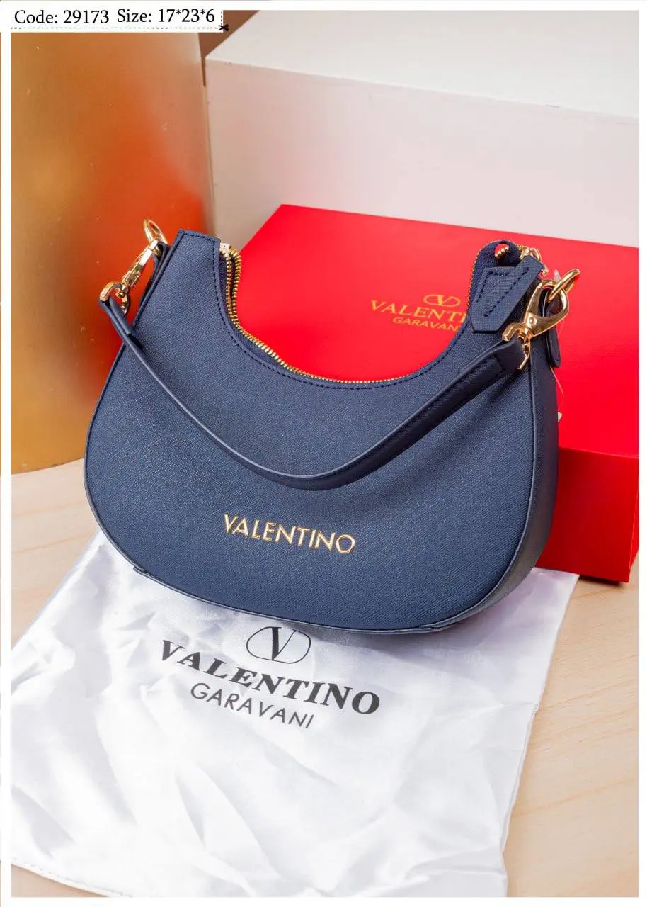 A premium Valentino Garavani inspired bag with gold logo, high-end PU leather, and a sleek curved silhouette—perfect for daily elegance.