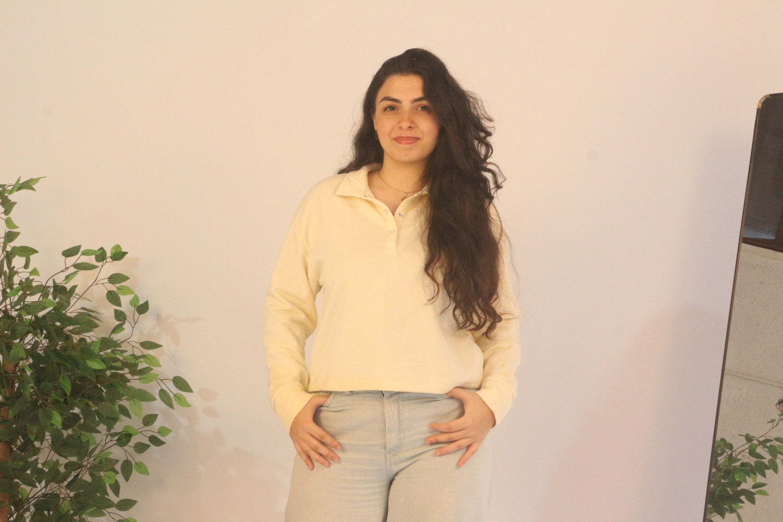 A versatile neutral shade that pairs effortlessly with dark trousers or colorful skirts.